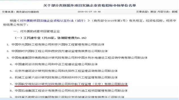 中航規劃通過商務部對外援助成套項目管理企業資格
