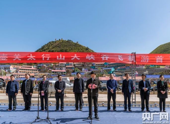 4月29日上午,山西長(zhǎng)治壺關(guān)太行山大峽谷飛機(jī)游“首飛”儀式在壺關(guān)縣石坡鄉(xiāng)南坪頭塢村隆重舉行。