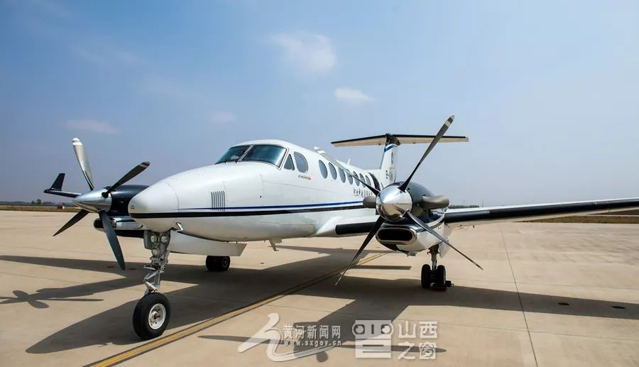 圖為執(zhí)飛太原堯城—運(yùn)城關(guān)公、太原堯城—大同云岡兩條航線的國(guó)王350型飛機(jī)。