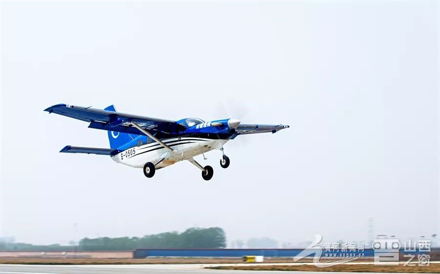 圖為執(zhí)飛太原堯城—呂梁大武航線的大棕熊100型飛機(jī)。