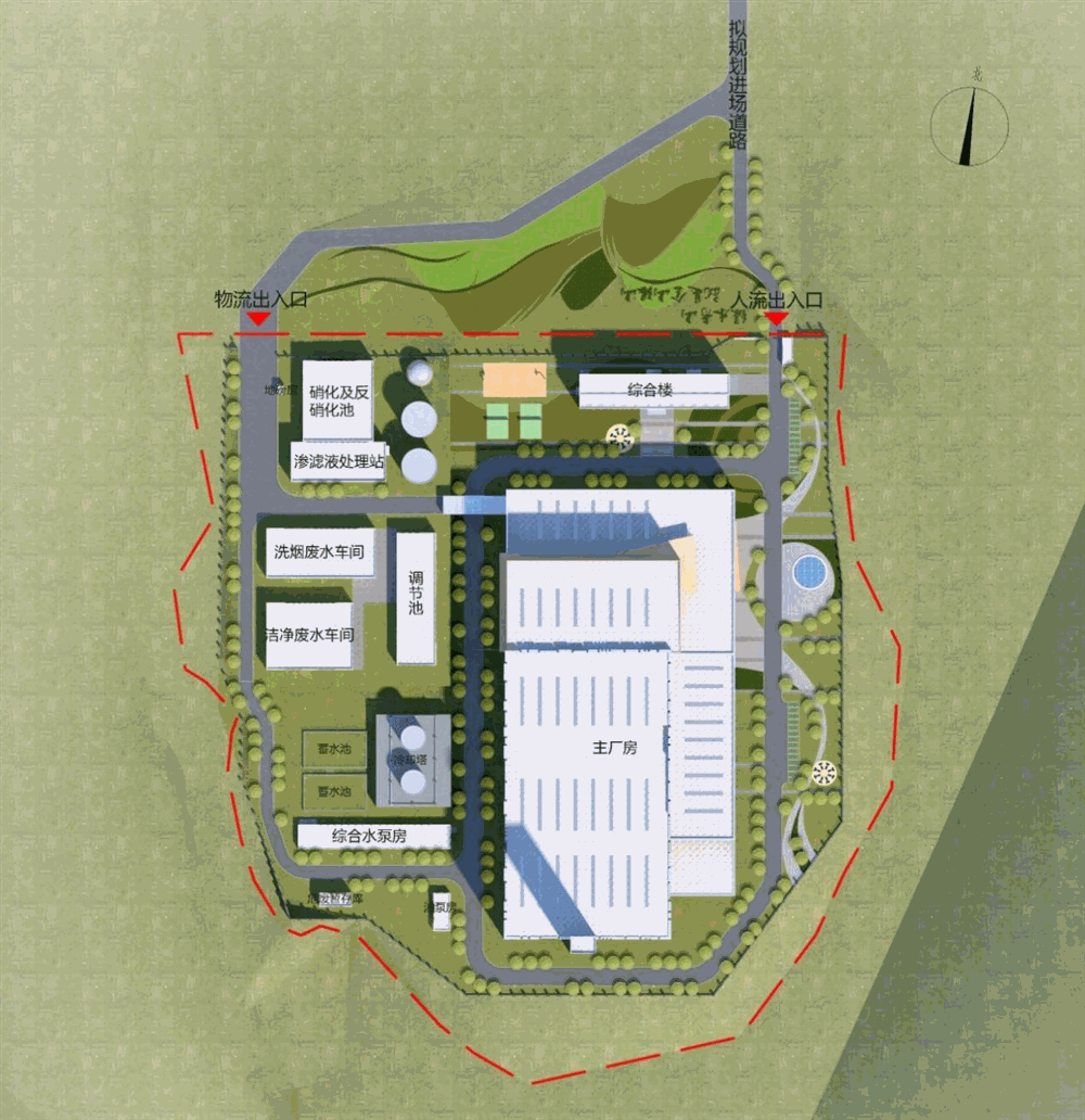 項目選用技術成熟可靠的爐排爐焚燒工藝和先進的煙氣凈化設施,建筑設計通過大尺度建筑體塊的有機組合,塑造充滿能量感的建筑造型,最終實現全廠節能、節水、安全、綠色、美觀的高效運行。